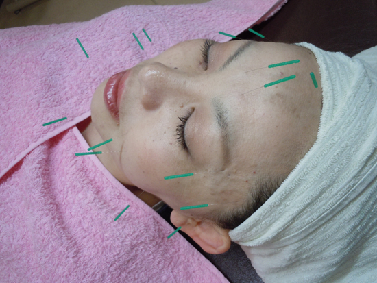 顔に鍼をすることで表情を作る筋肉に直接働きかけて、シワの原因の一つである硬くなった筋肉をやわらかくし、低下した筋肉への血流を向上させて、たるみを解消することが出来ます。また、皮膚にも直接的に働きかけるので、コラーゲンやエラスチンの分泌を促進したり、血液やリンパの循環をよくして、お肌のターンオーバーが円滑になる効果が期待できる施術です。